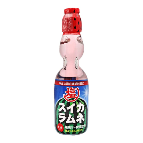 Лимонад RAMUNE Арбуз — японский газированный безалкогольный напиток.Ramune - это лимонад в специальной бутылке. Основная «фишка» этих бутылок, вызвавшая дикий интерес у американцев и европейцев, заключается в стеклянном шарике, заменяющем пробку. Чтобы отведать напиток, пробку выталкивают внутрь. Поэтому пить напиток непривычно, так как стеклянный шарик загораживает горлышко. Причем пластиковая крышка, которая прилегает к самой бутылке, не даёт возможности достать шарик из упаковки. Заказать с доставкой по Москве Лимонад RAMUNE Арбуз можно в онлайн магазине sweet.market